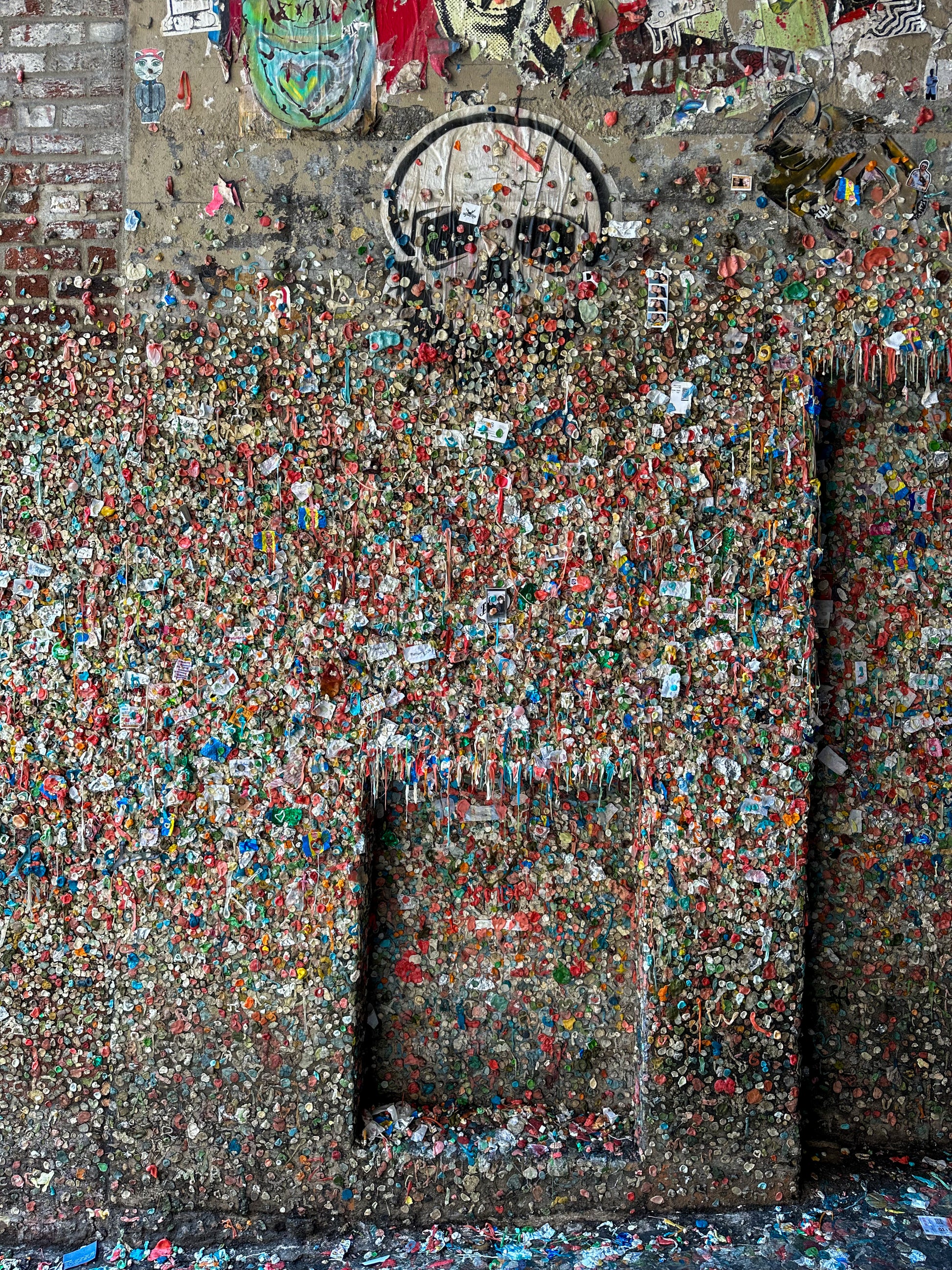 I visited the Gum Wall during FLOCK 2024 and was immediately split between disgust and captivation at the seeming monument to humankind's desire to leave a trace. While the layers of gum and spit are undoubtedly disgusting, I could not deny an impressiveness to the space in its colorful quirkiness. An ode to individuality perhaps!Â